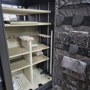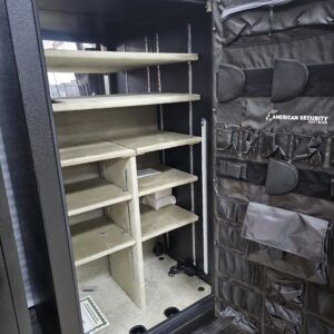 AMSEC’s new BFX6636 is extra wide to hold up to a total of 24 long guns inside along with 2 extra on the door. You can also configure the safe to have 12 long guns on one side and 3 small adjustable shelves on the other. You also have room on the two top shelves for other items.